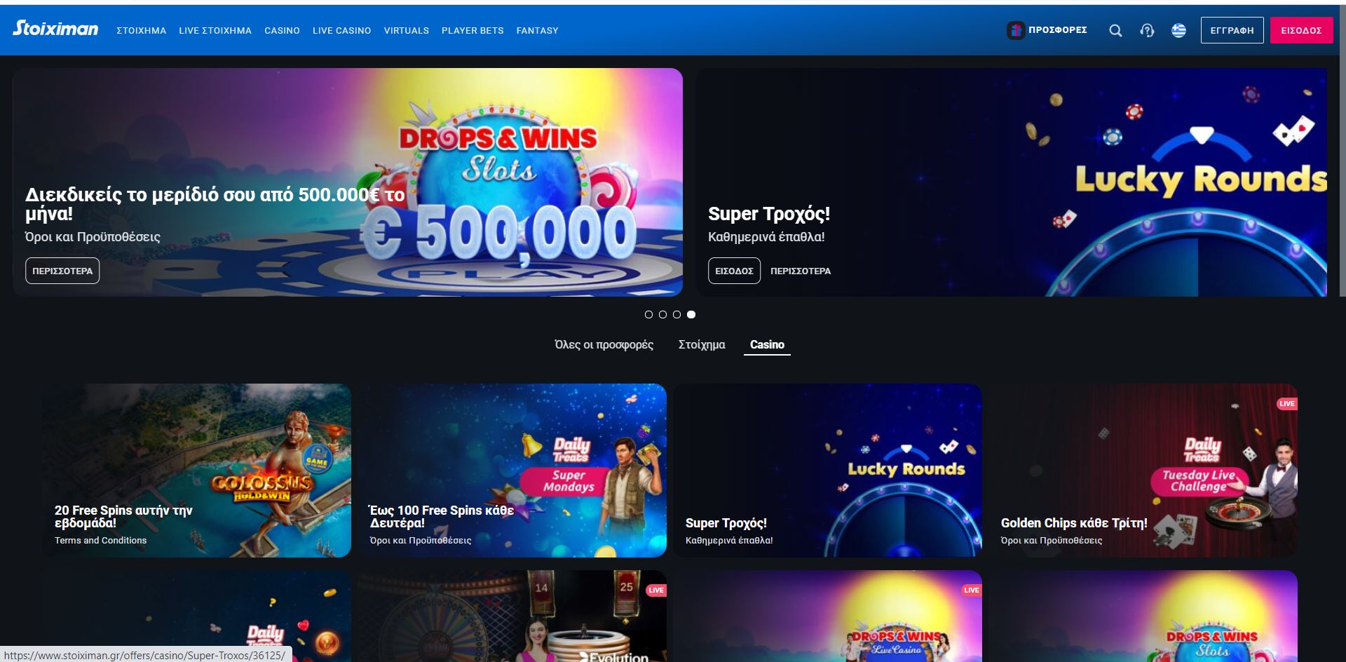 Το Stoiximan Καζίνο έχει φιλικούς όρους χρήσης στις προσφορές* του, με ξεκάθαρη επικοινωνία, δίνοντας στον παίκτη να καταλάβει εύκολα τις διαδικασίες.