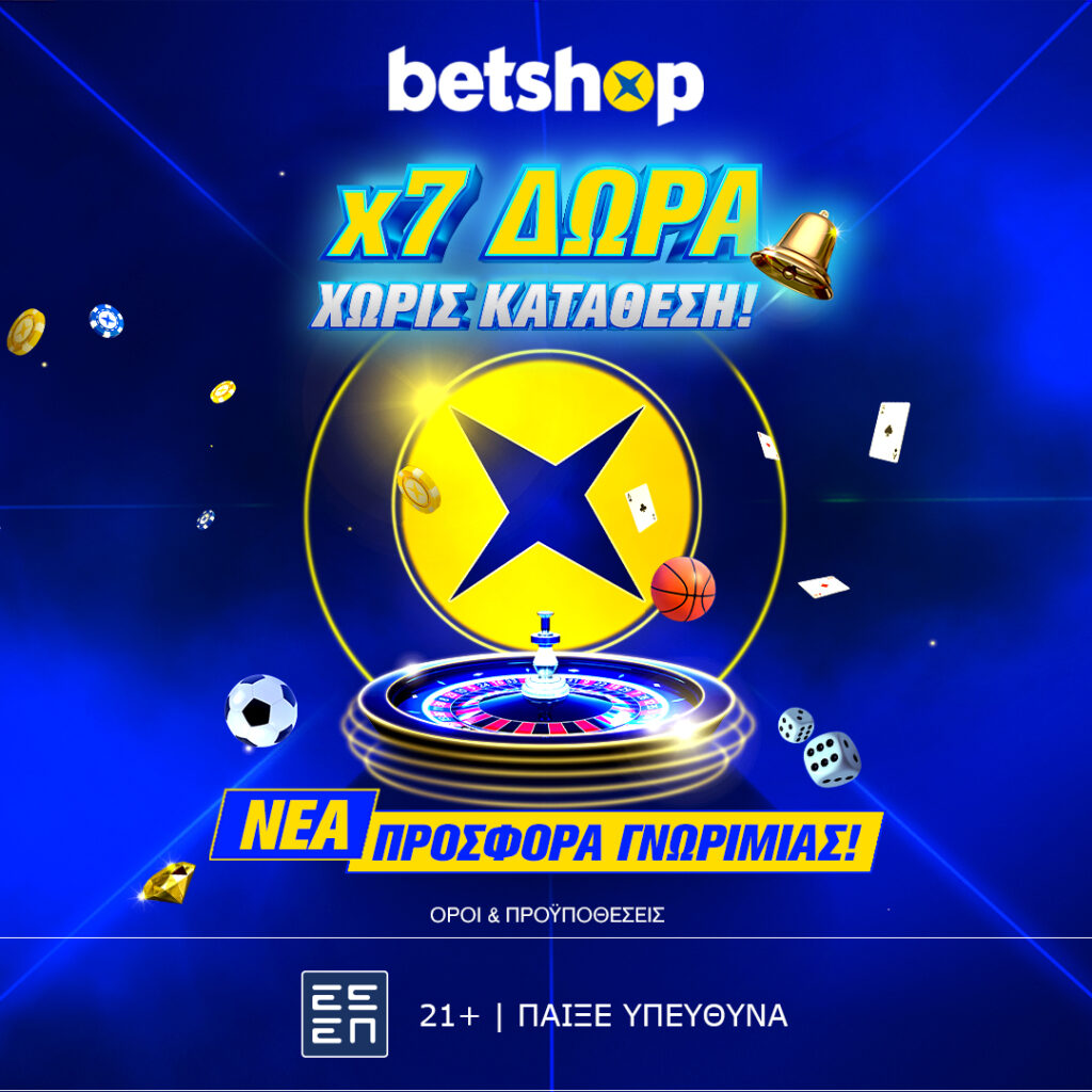 Betshop: Nέα προσφορά* γνωριμίας με 7x δώρα* χωρίς κατάθεση & τριπλή έκπληξη*!