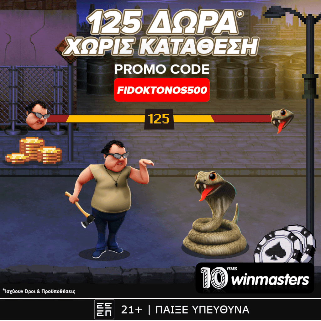 125 δώρα* χωρίς κατάθεση* με promo code FIDOKTONOS500.