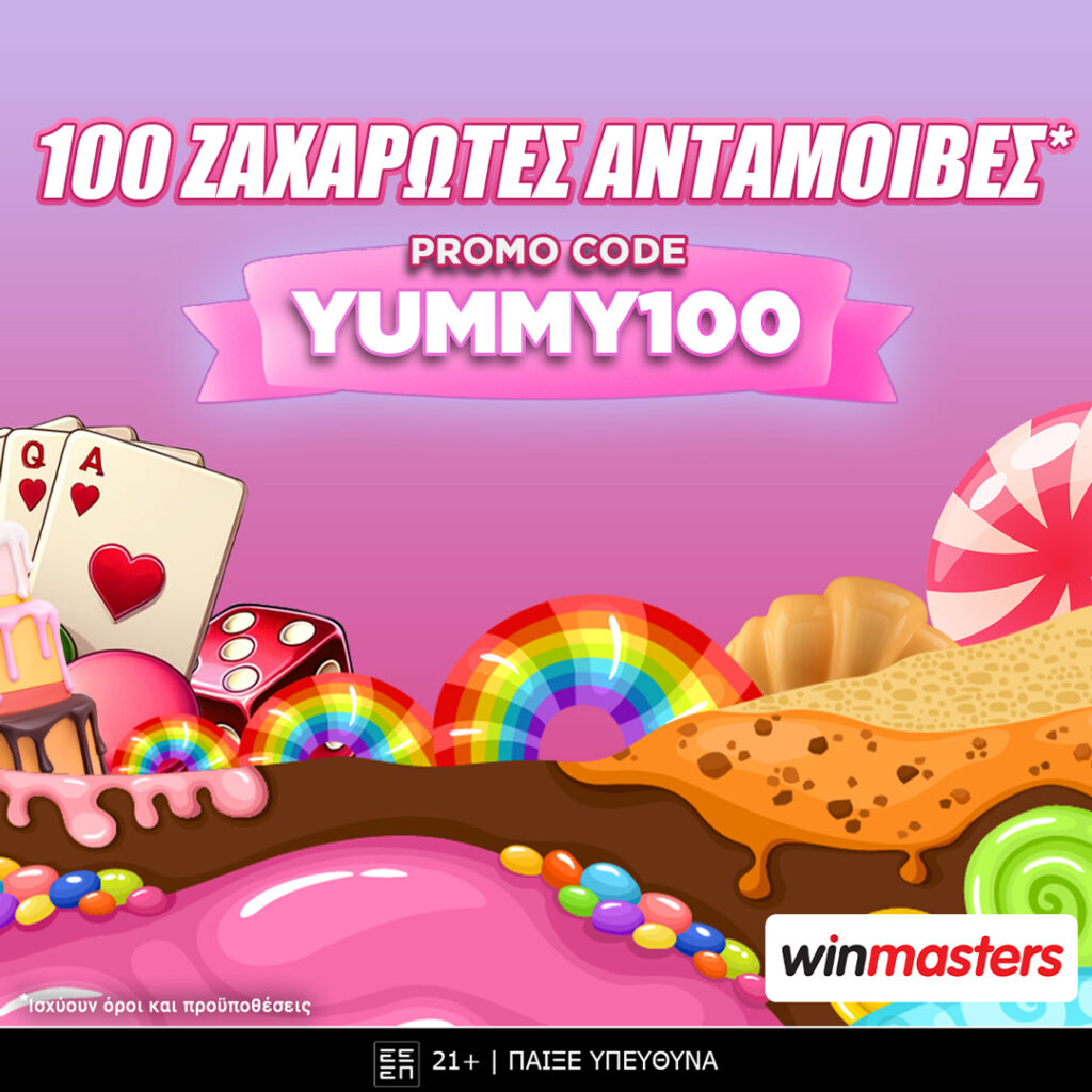 100 γλυκιές ανταμοιβές* χωρίς κατάθεση με promo code YUMMY100.